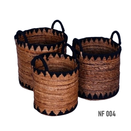 Our baskets, which we define as natural fiber baskets, are made of various natural materials such as banana fiber, water hyacinth, sea grass which we sometimes mixed with raffia as an ornament.