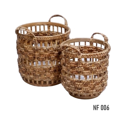 Our baskets, which we define as natural fiber baskets, are made of various natural materials such as banana fiber, water hyacinth, sea grass which we sometimes mixed with raffia as an ornament.