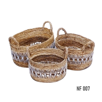 Our baskets, which we define as natural fiber baskets, are made of various natural materials such as banana fiber, water hyacinth, sea grass which we sometimes mixed with raffia as an ornament.